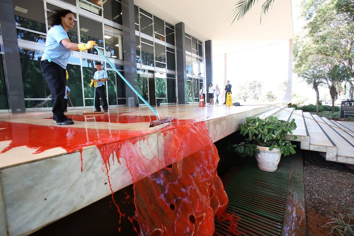 A grande mídia não cansa de passar vergonha, desta vez a Folha de S. Paulo chamou um ato de vandalismo promovido por manifestantes contratados pelo PT de ‘ performance’. O grupo jogou tinta vermelha contra um prédio do governo e a Folha passou pano para os marginais.