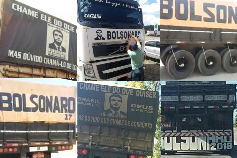 Diversos caminhoneiros, desgostosos com a situação atual e ansiando por melhoras, resolveram se unir e fazer propaganda gratuita para o candidato Jair Bolsonaro.