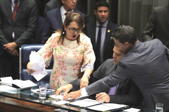 Katia Abreu – sua principal aliada – partiu para a agressão e roubou todos os documentos da mesa diretora do senado para tentar interromper a sessão.