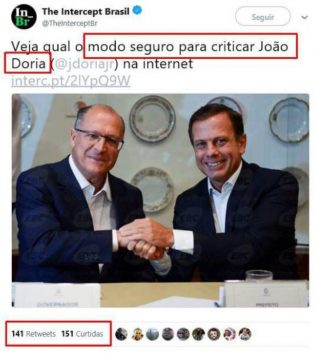 “Veja qual o modo seguro para criticar João Doria na internet”, dizia a postagem datada de 2017 que trazia uma matéria intitulada de “Como criar uma conta anônima no Twitter para driblar autoridades”.