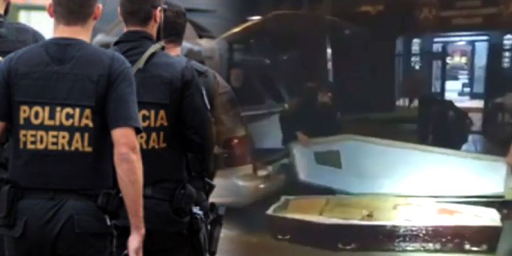 Mais de 40 policiais federais trabalham na ‘Operação Caixão’ para cumprir mandados de busca e apreensão e quatro mandatos de prisão contra o bando.