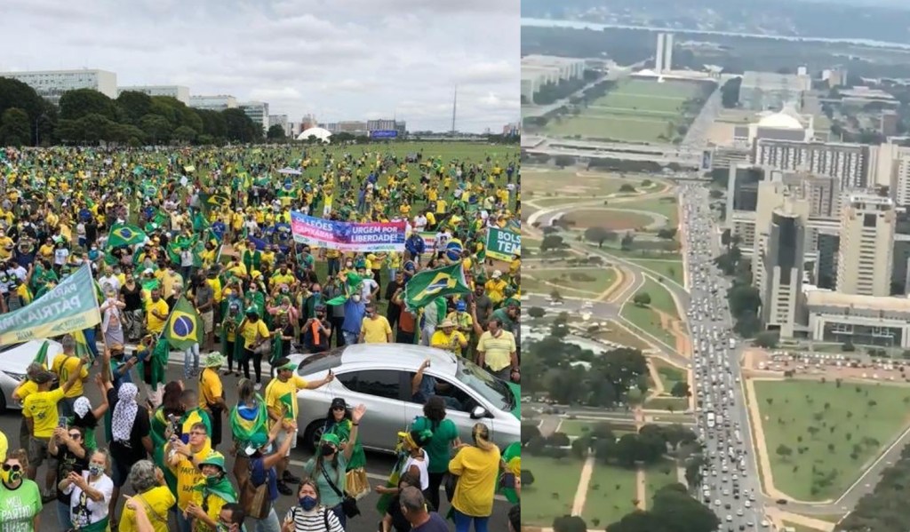 Em Brasília, os simpatizantes do presidente se reuniram em frente ao Congresso Nacional com faixas pedindo intervenção militar. O público presente grita “Bolsonaro, eu autorizo”, em referência a uma fala do presidente do dia 14 de abril, em que disse que esperava “um sinal do povo” para agir.